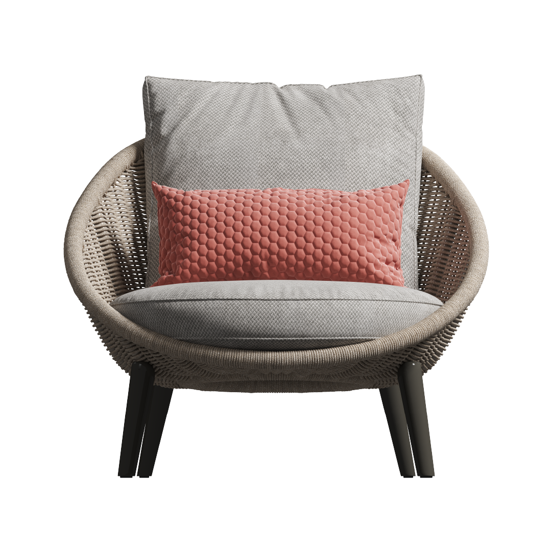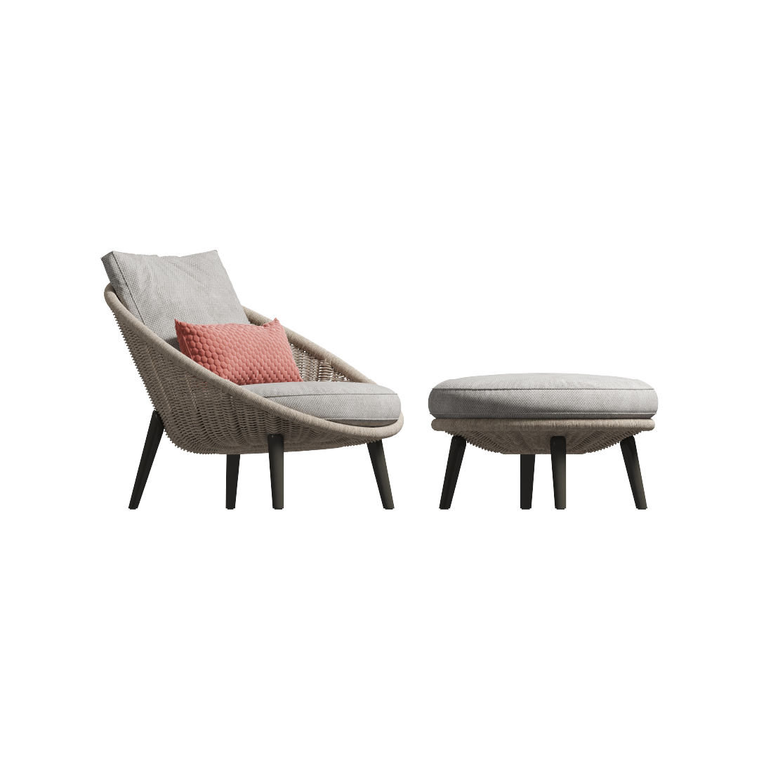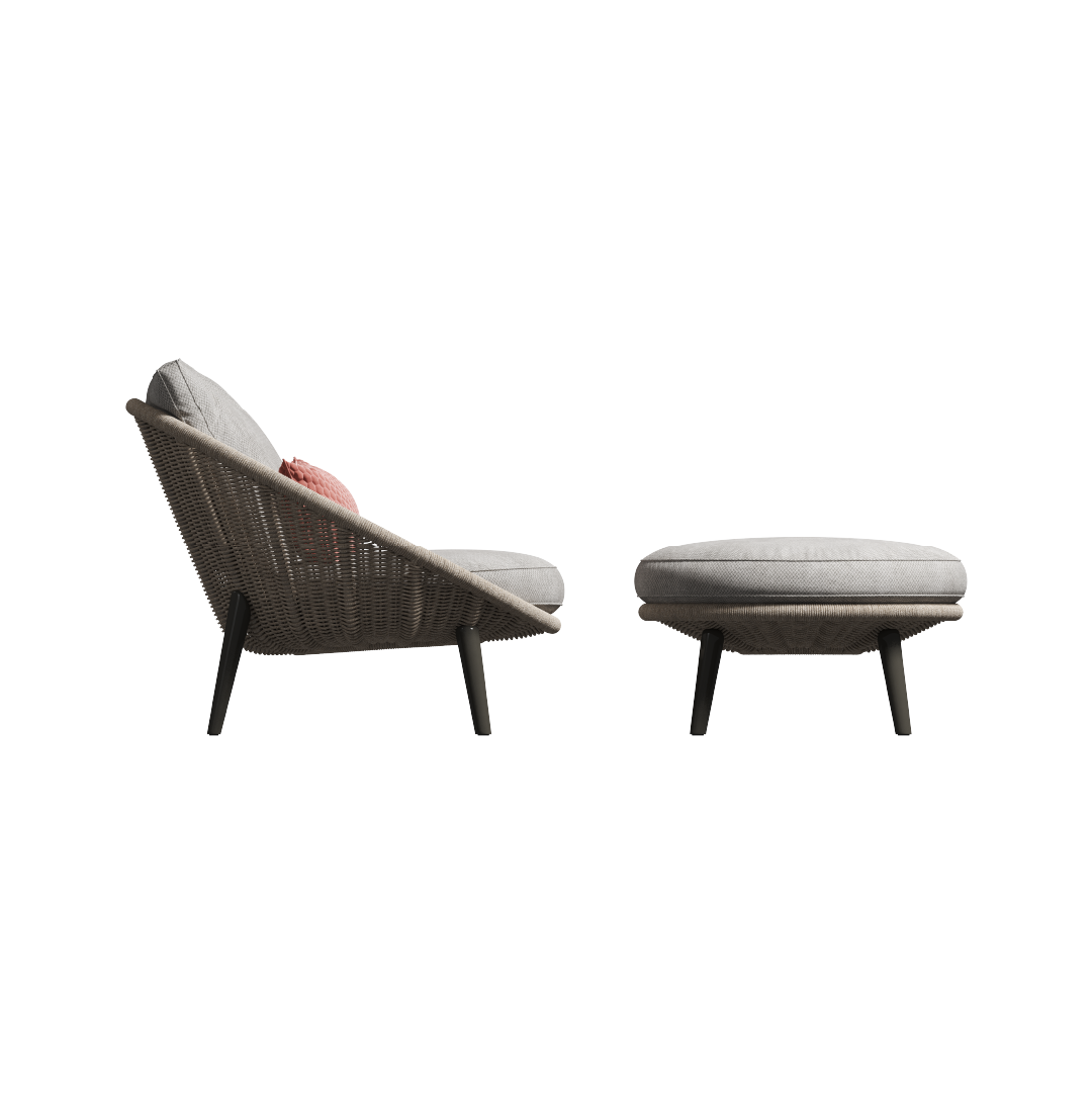 Lido Cord Outdoor Lounge Armchair with a footrest. This armchair and footrest combination is ideal for creating a comfortable and stylish outdoor lounge area, perfect for relaxing and entertaining