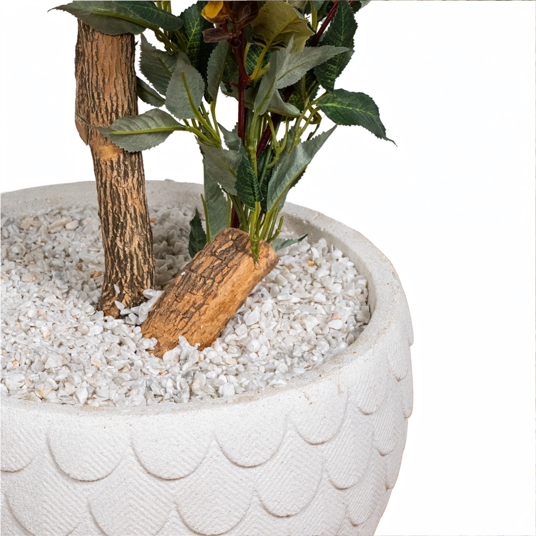 Luma White Stone Planter with Maroon Blossom Tree – 16 Inches