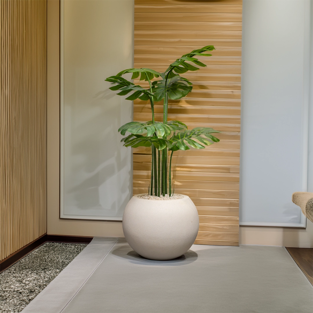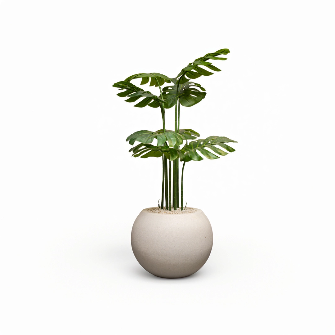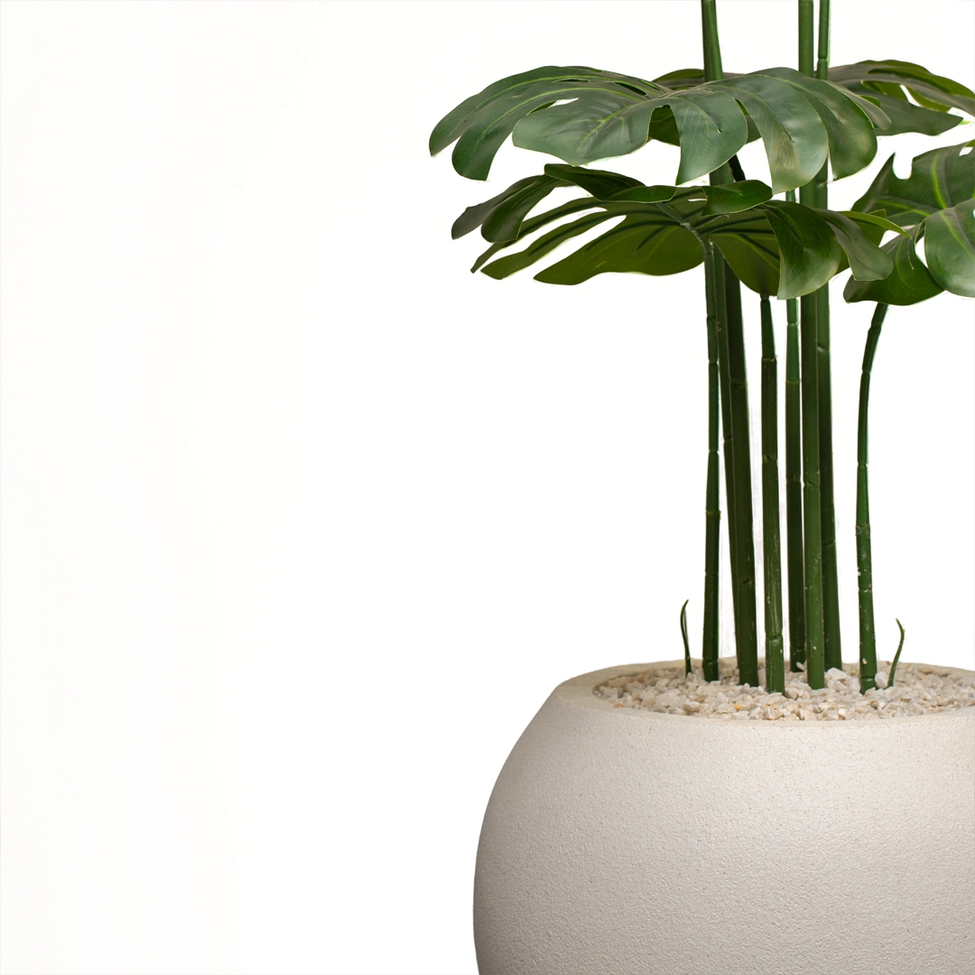 Orion White Stone Planter with Monstera Plant – 3 Feet