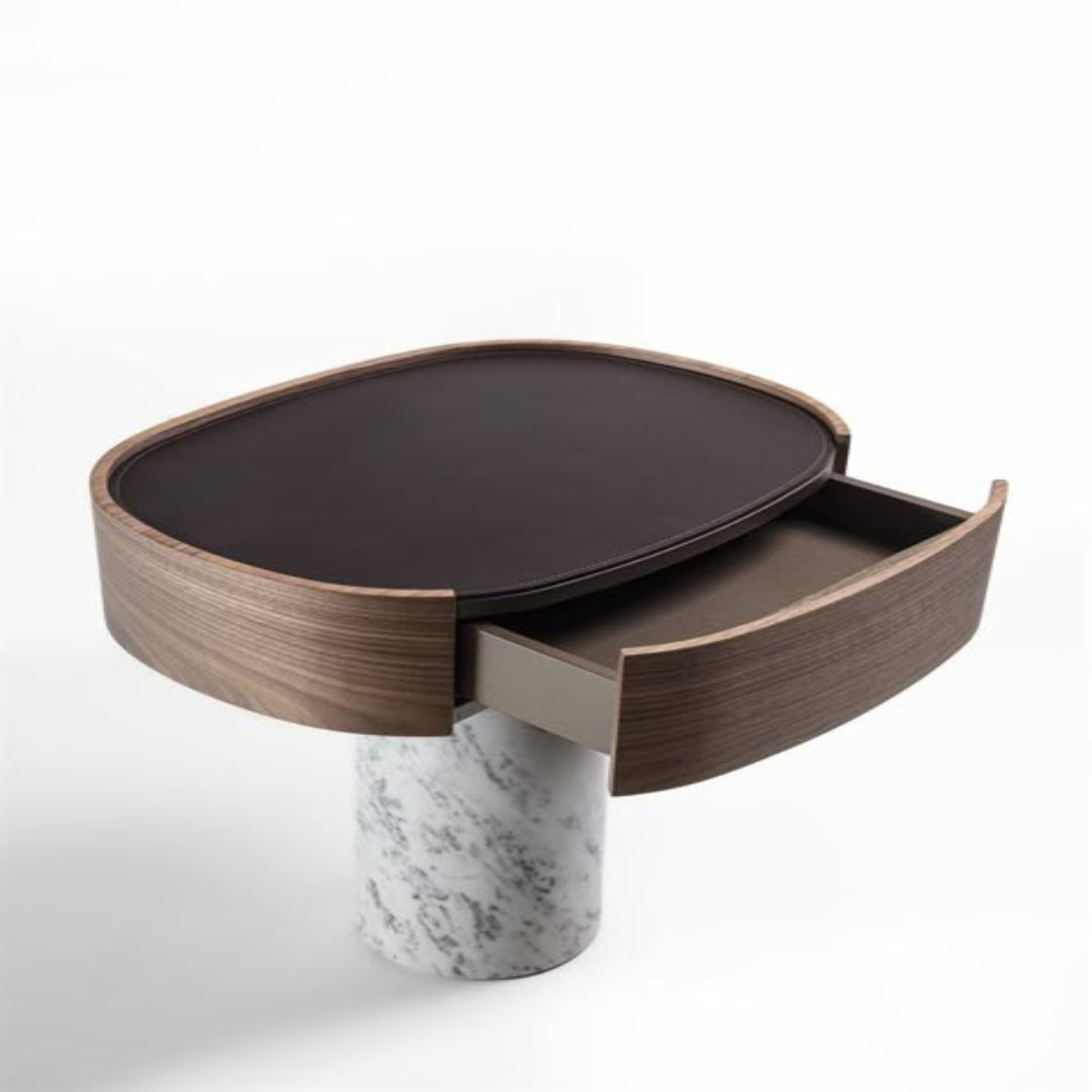 Elevate your bedroom or living space with the Lever Nightstand, a modern luxury accent piece crafted for refined interiors. Featuring a smooth wooden top with elegant curvature and a bold marble base, this table offers a stunning contrast between organic texture and timeless stone.
