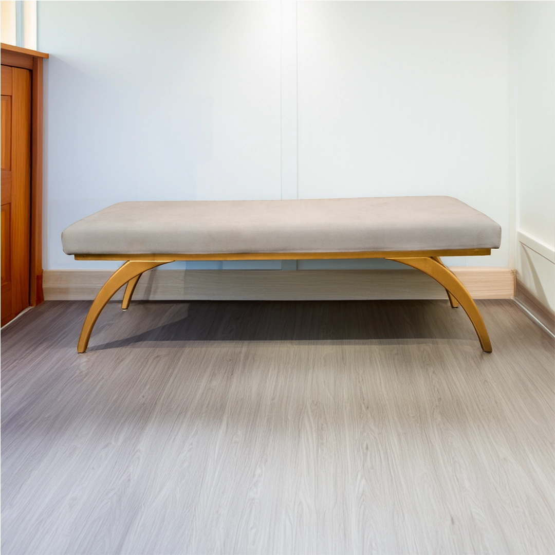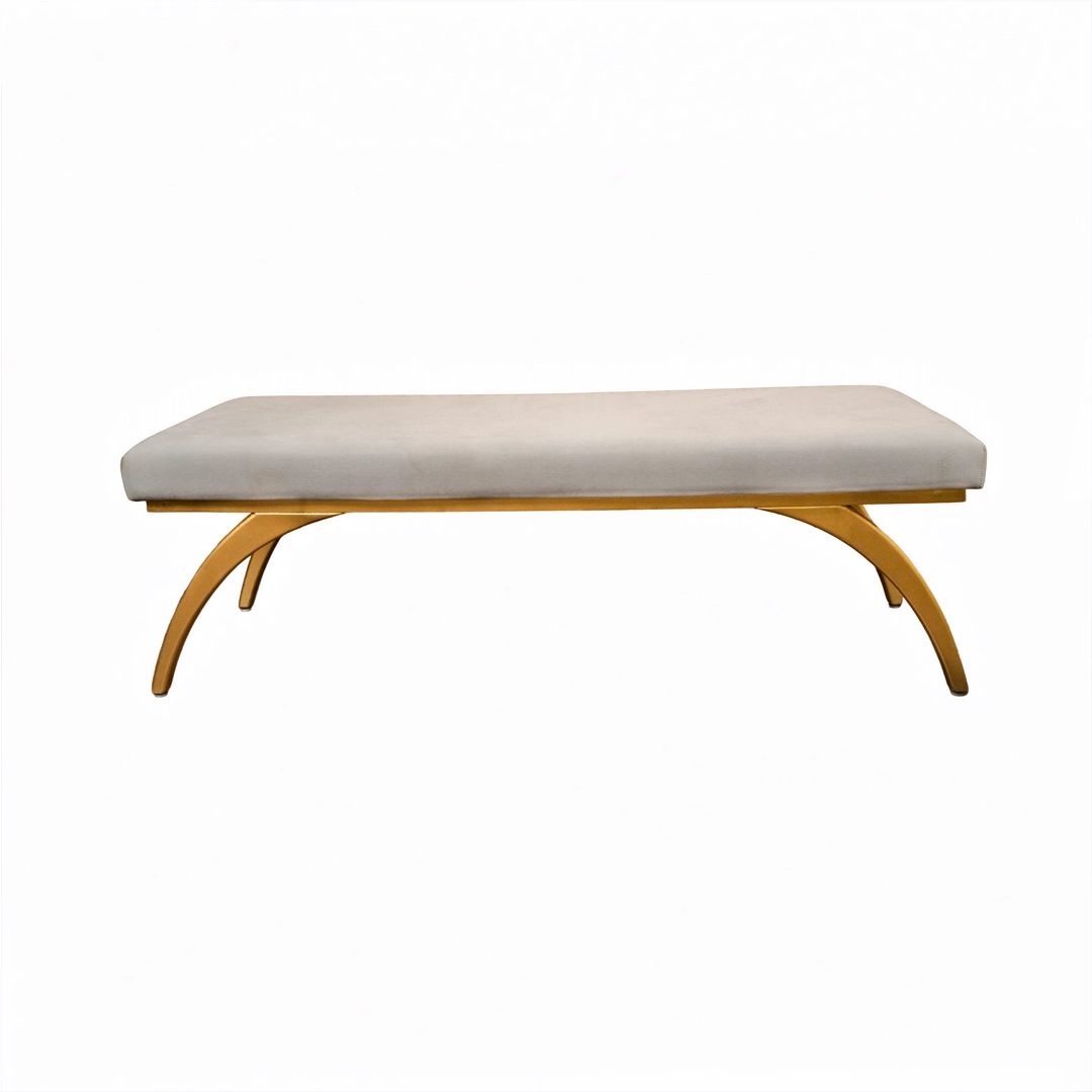 The Grey Ottoman Bench is the perfect blend of style and functionality for your home. Covered in soft, cozy grey faux fur, this bench offers a welcoming touch to any space. The sturdy wooden frame and sleek gold legs provide a modern and elegant aesthetic that complements a variety of decor styles.
